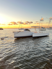 100% electric propulsion , a real technical challenge combining speed, distance, autonomy, battery weight, with the aim of reaching a pleasant cruising speed of 8-12 knots to cover the 30 nautical miles which allow a very beautiful day at sea. In addition, the ability to reach 17-20 knots over a short period of time makes the boat playful and very reassuring in heavy seas.